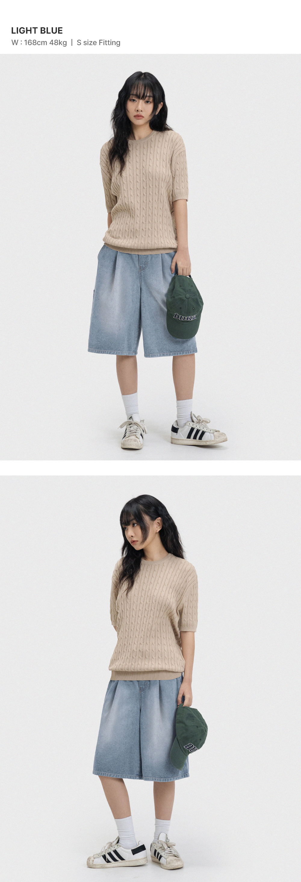 버뮤다 카펜터 숏 데님팬츠 밴딩 스카이 블루