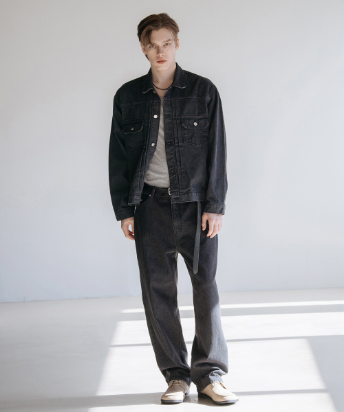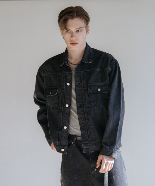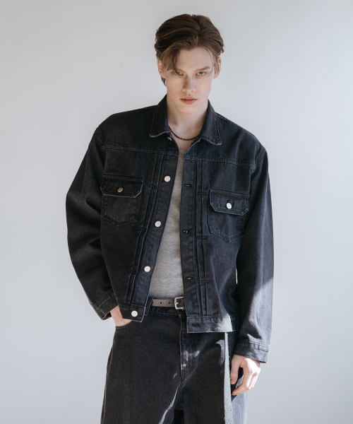 다트 워싱 데님 트러커 자켓 [로우 블랙]