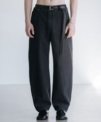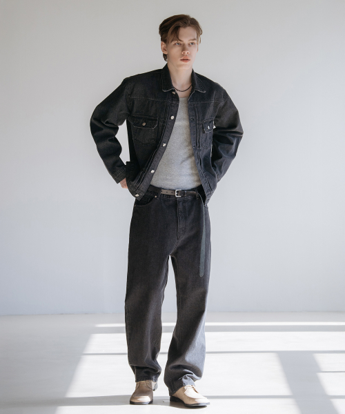 다트 워싱 레귤러 와이드 데님 팬츠 [로우 블랙]