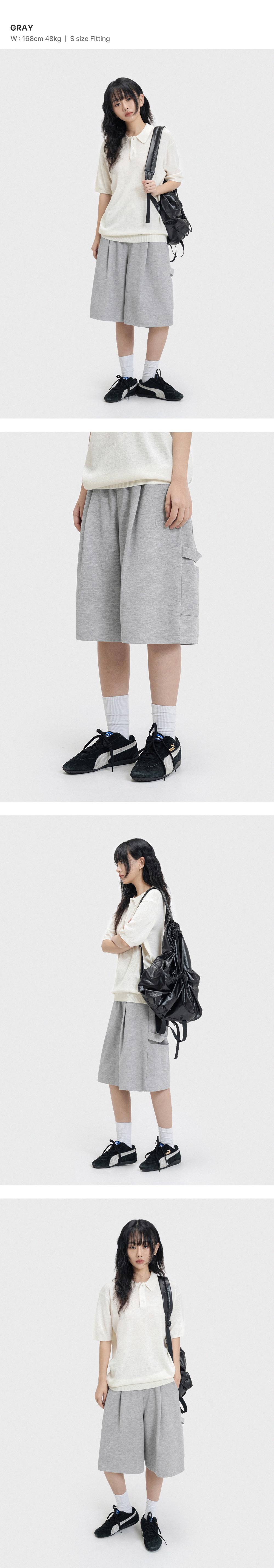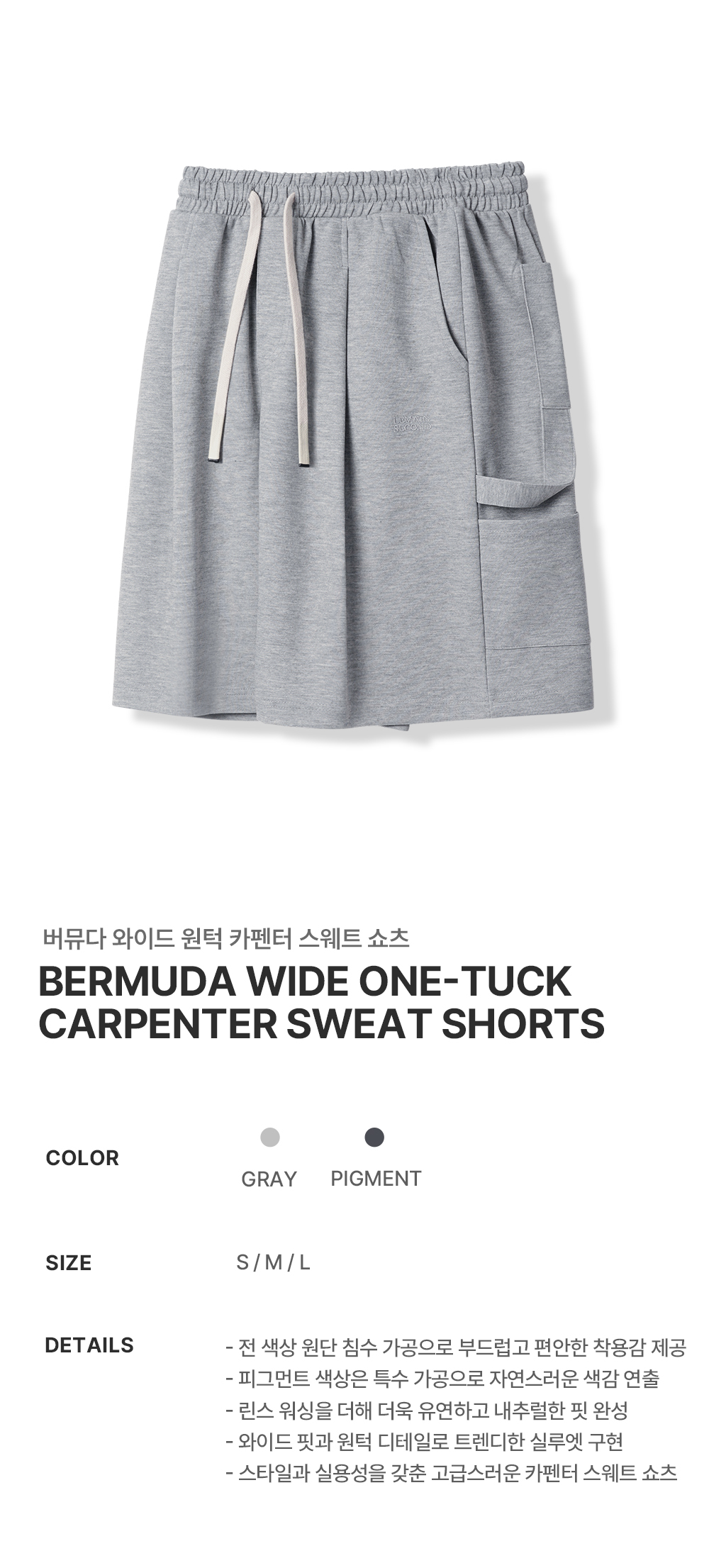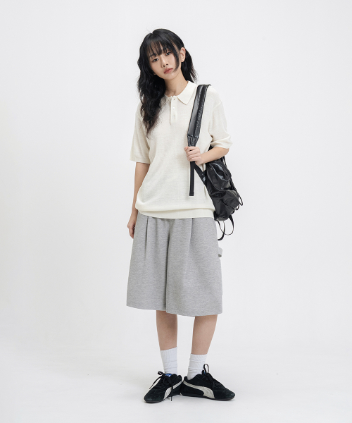 버뮤다 와이드 원턱 스웨트 쇼츠 [그레이]