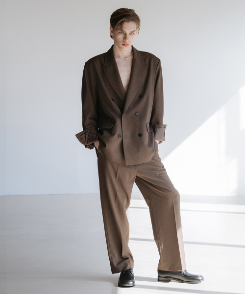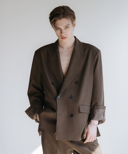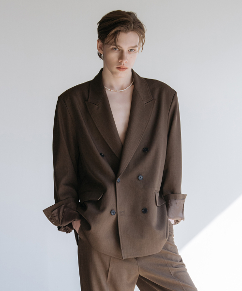 시에르 피크드 더블 오버핏 셋업 수트 [브라운]