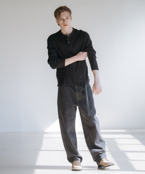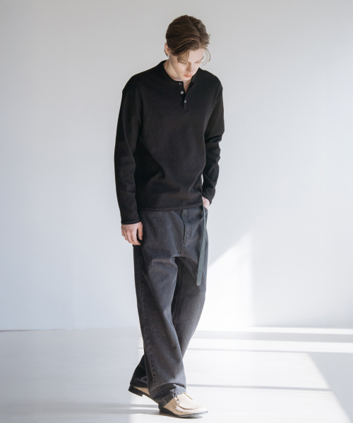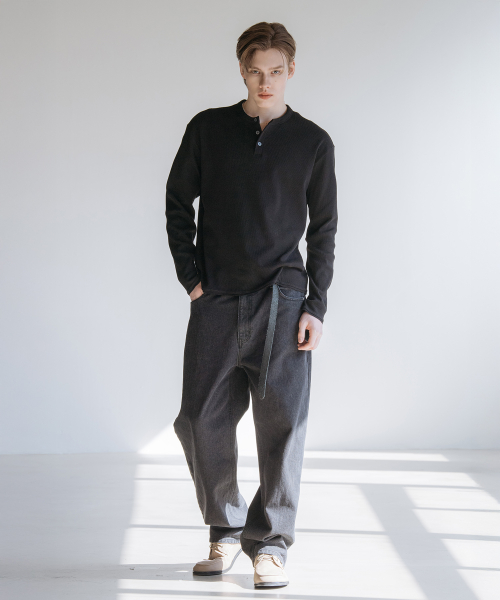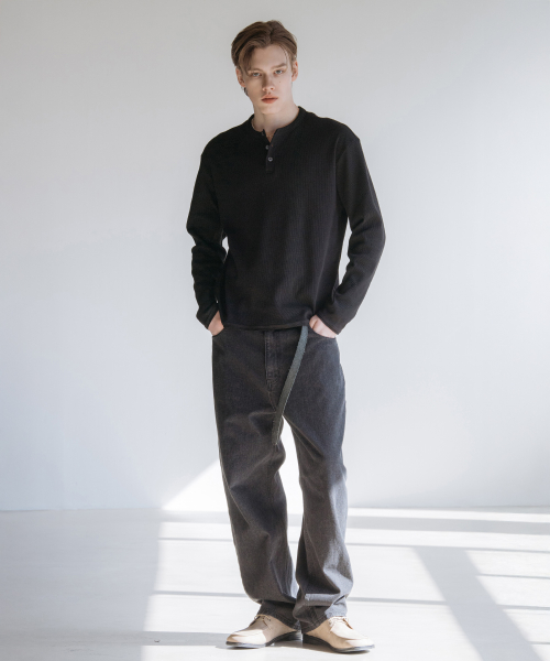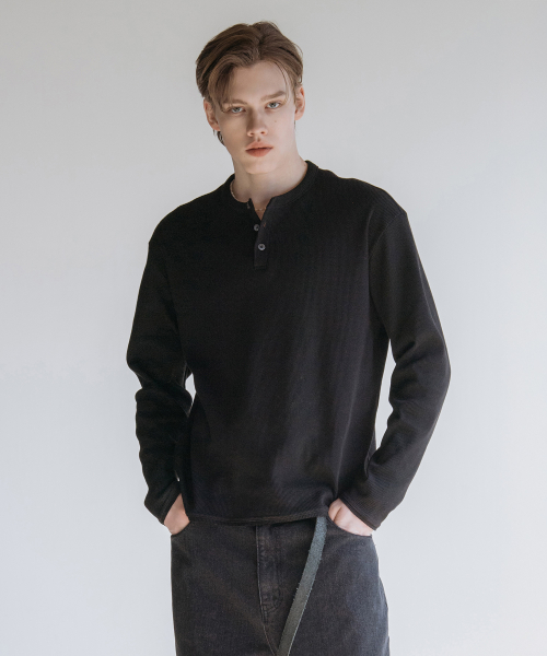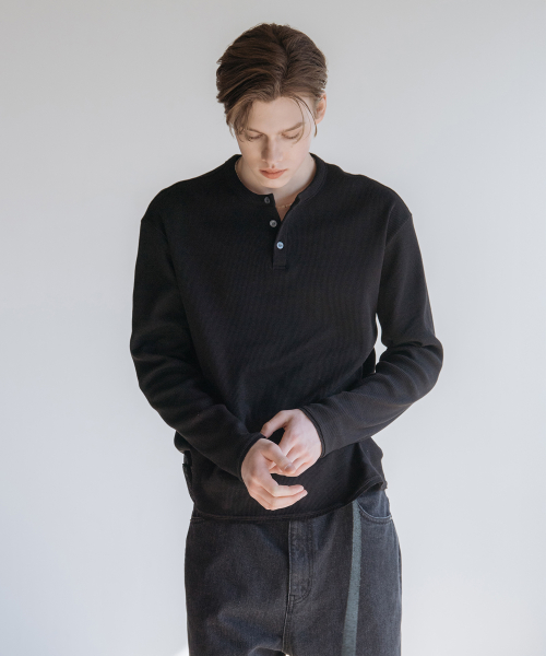 디마 코튼 헨리넥 긴팔 티셔츠 [블랙]