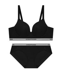 에센셜 골지 노와이어 브라 팬티 세트 - 블랙