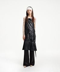 레더 폴드 에이프런 원피스