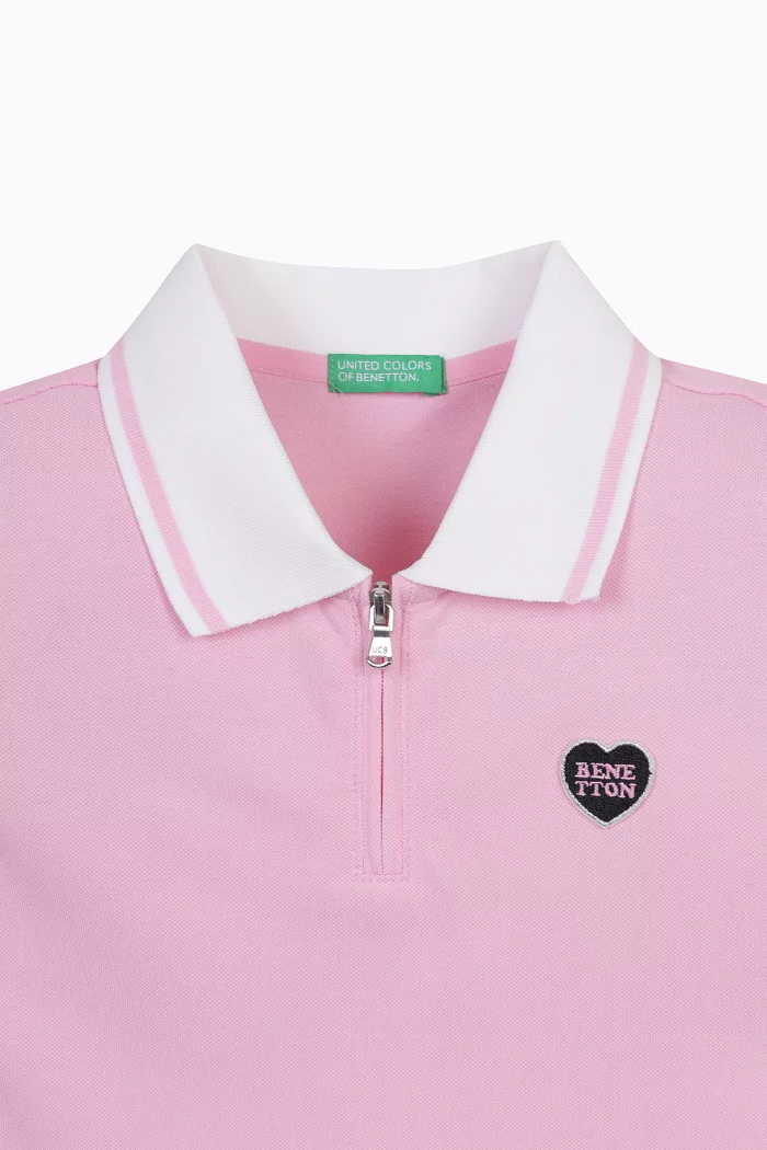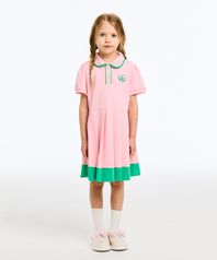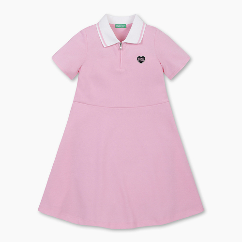 스포티하면서도 발랄한 무드가 돋보이는 카라 집업 원피스.