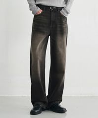 콘트라스트 세미 와이드 워싱 데님 팬츠 [BLACK]