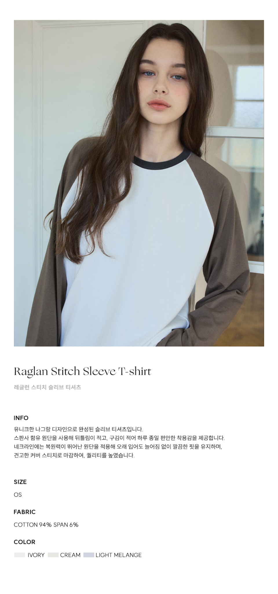 W/레글런 스티치 슬리브 티셔츠_3Color(W25-TP11)