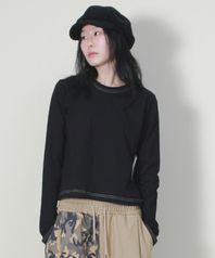 아웃스티치 배색 세미크롭 긴팔 티셔츠 블랙