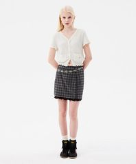 키르시 플레인 세미 와이드 데님 스커트 팬츠 [화이트]