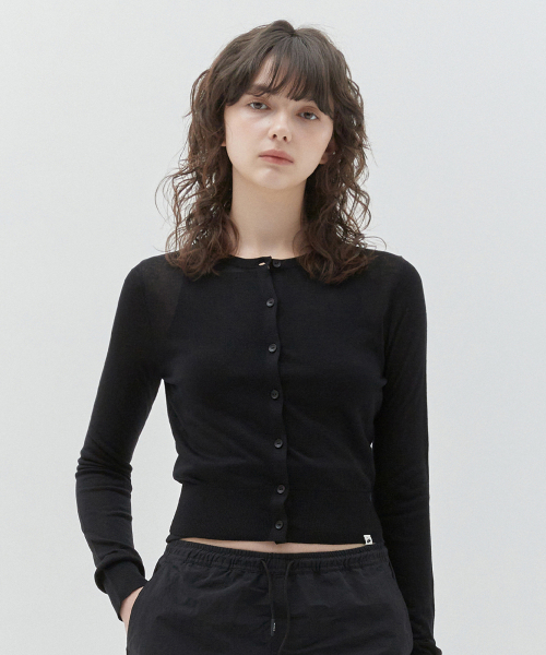 키르시 플레인 시스루 크롭 가디건 [블랙]