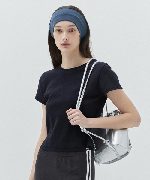 • 크롭핏 라운드넥 펀칭 디테일 티셔츠