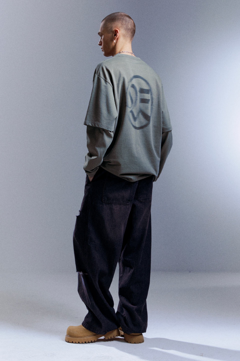 소프트 로고 롱슬리브 스톤 카키