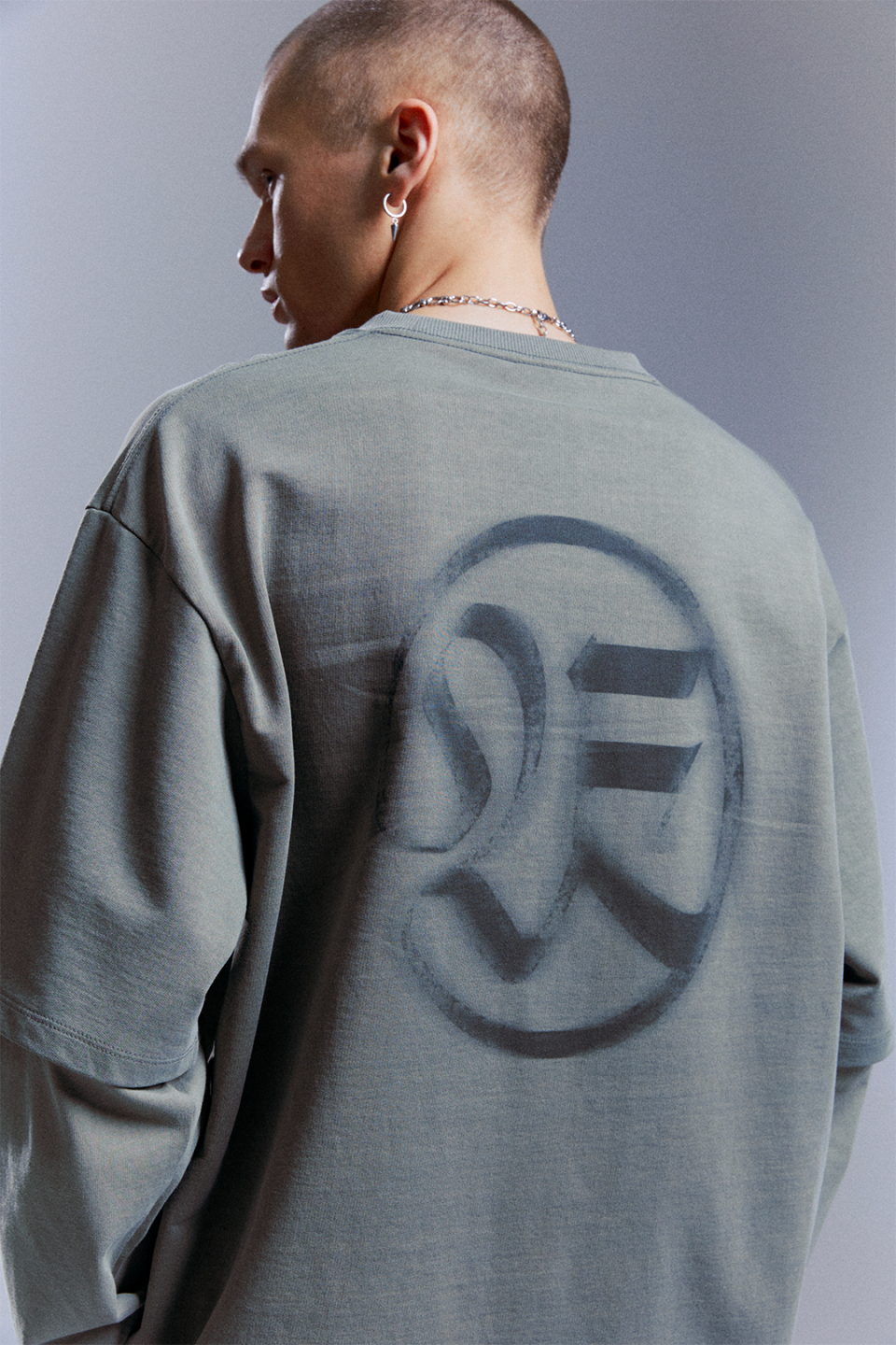 오버핏 시그니처 자수 스웨트 셔츠 [그레이]
