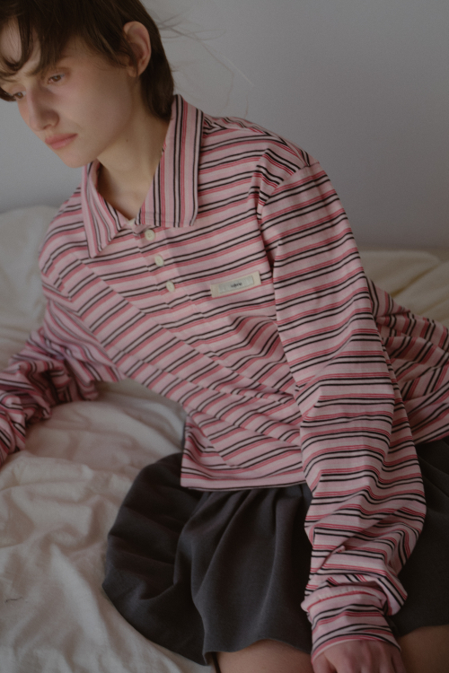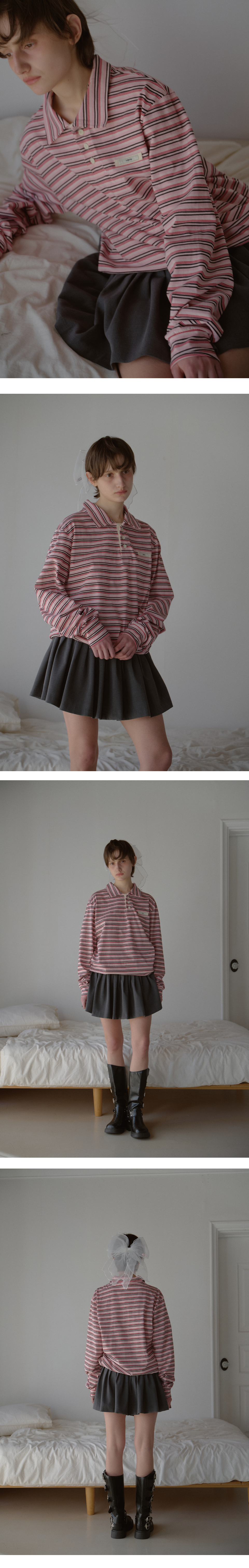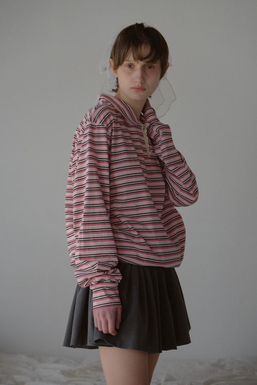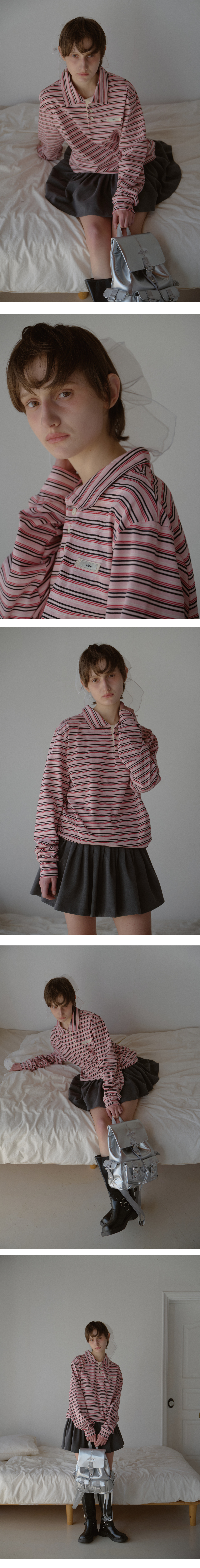 STRIPE STRING COLLAR T-SHIRT_PINK