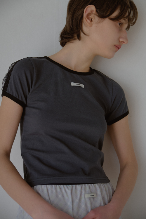 LACE LINE T-SHIRT_CHARCOAL