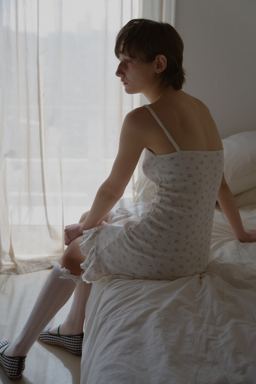 FLOWER FRILL DRESS_IVORY