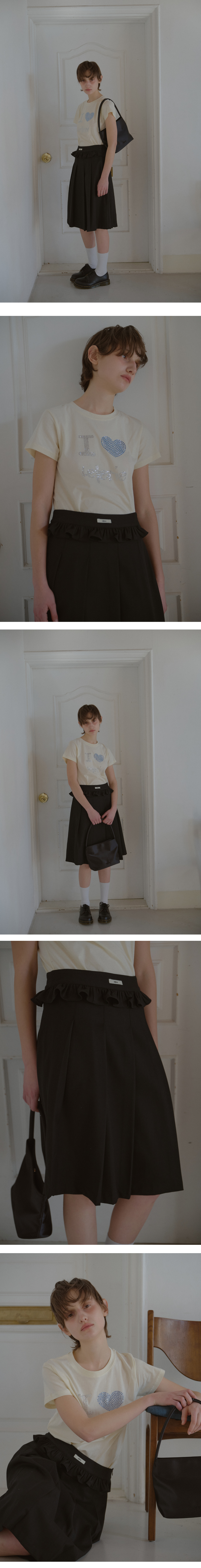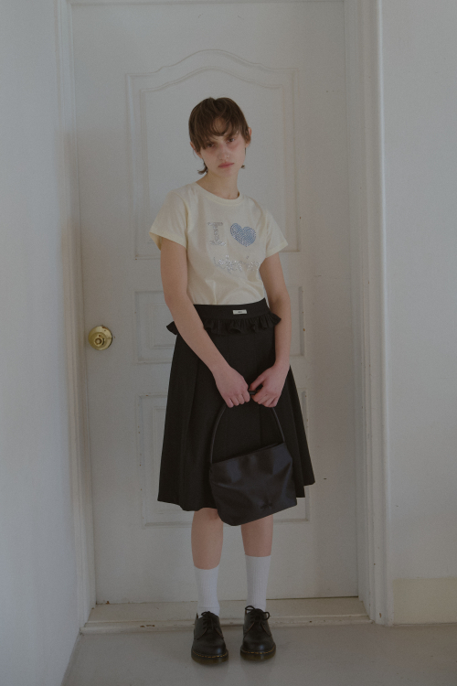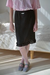 FLOWER FRILL MIDI SKIRT_BLACK