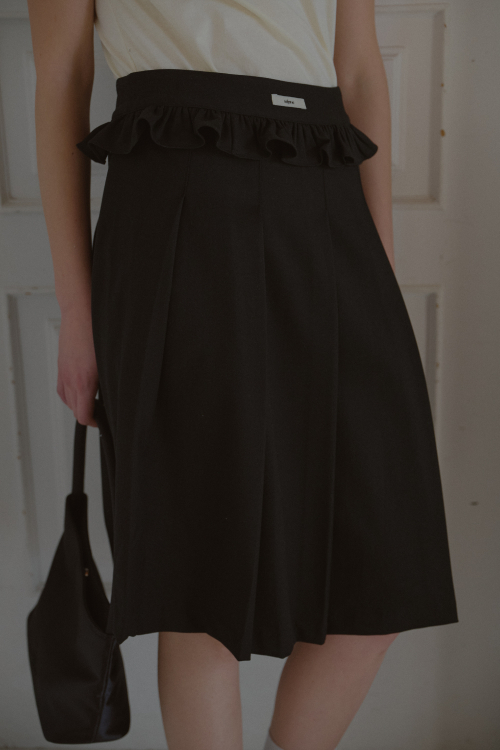 FRILL PLEATS MIDI SKIRT_BLACK