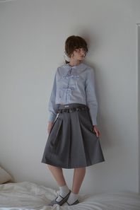 FRILL PLEATS MIDI SKIRT_GREY
