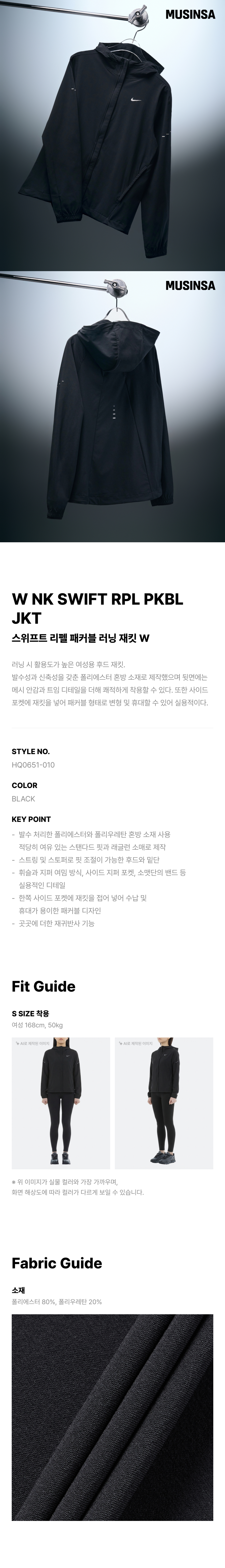 스위프트 리펠 패커블 러닝 재킷 W - 블랙 / HQ0651-010