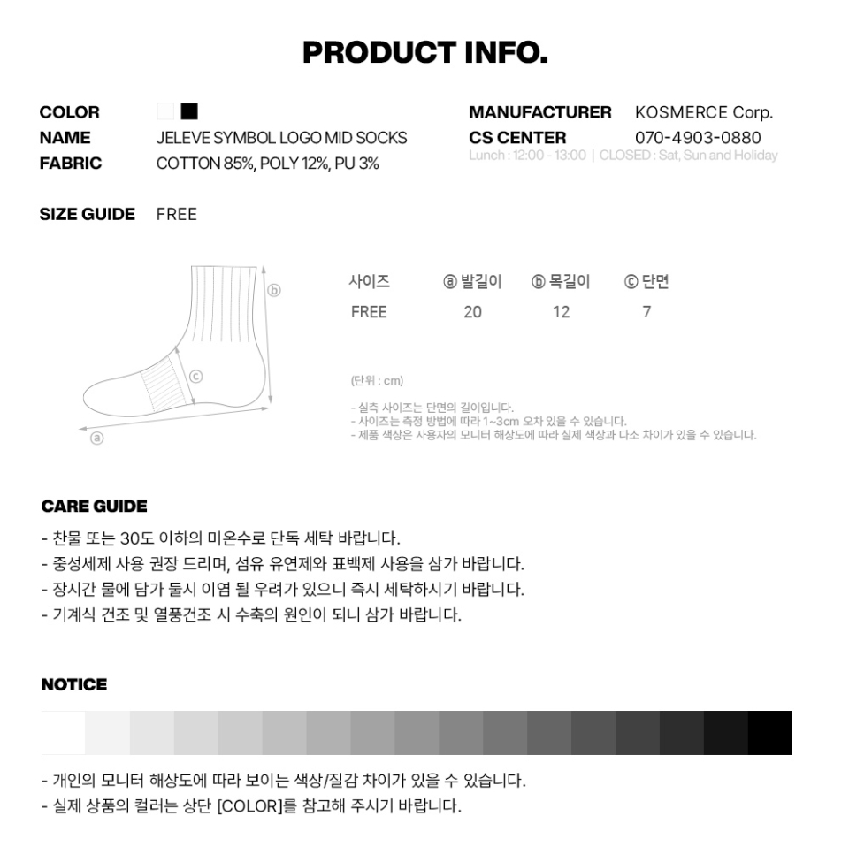 심볼로고 미드 삭스 3팩 [화이트/블랙]