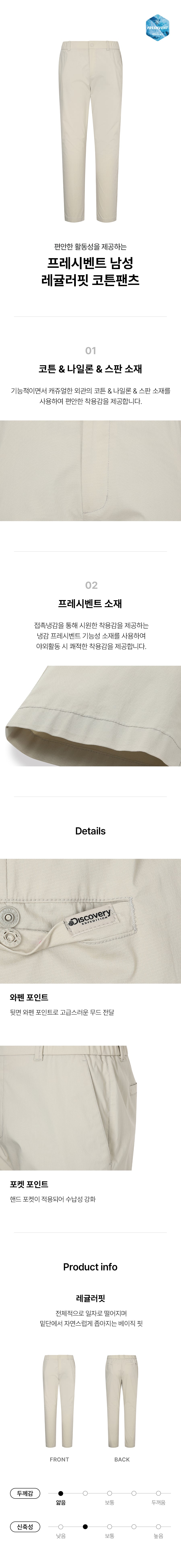 프레시벤트 남성 레귤러핏 코튼팬츠 (D.Skin Beige)