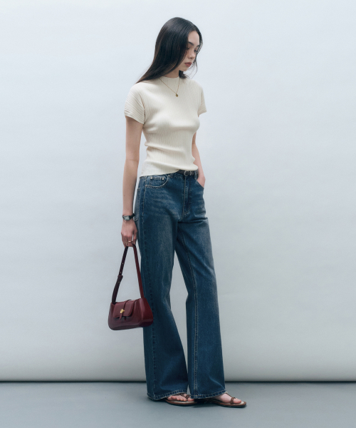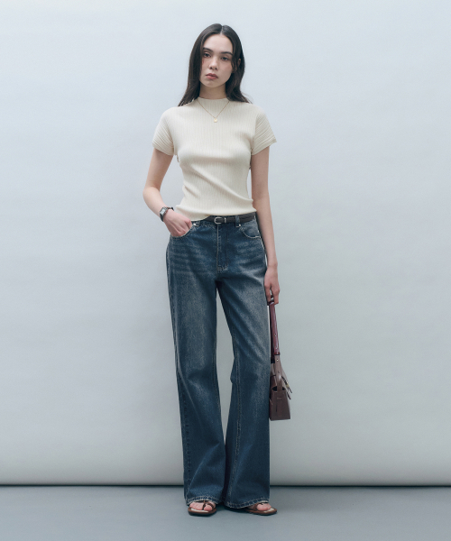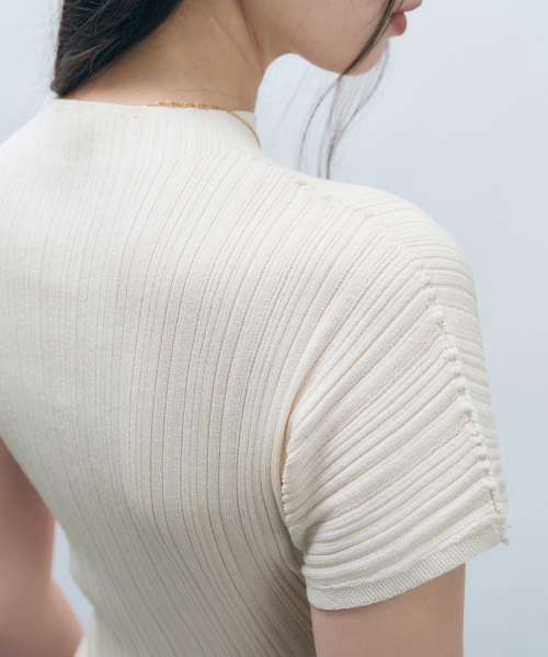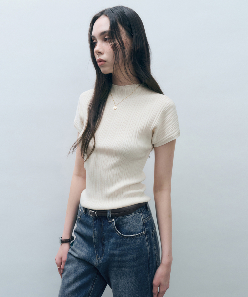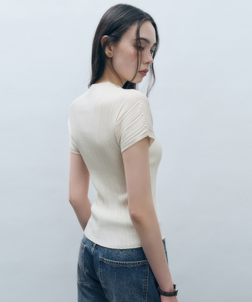 홀가먼트 하프넥 플리츠 니트 탑 크림 MDKT107CREAM