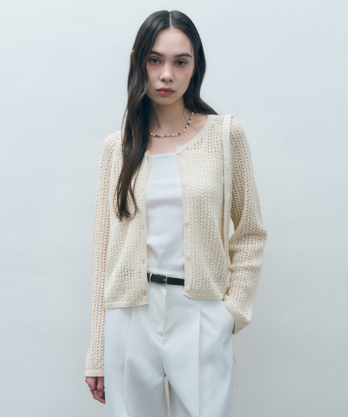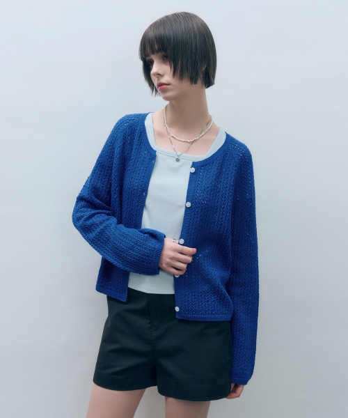 [From ITALY] 펀칭 라운드넥 니트 가디건 MDCD046_6 Colors