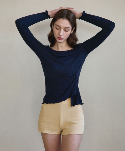 여성 요가복 DEVI-T0124-네이비 필라테스 더블버튼 랩 롱슬리브