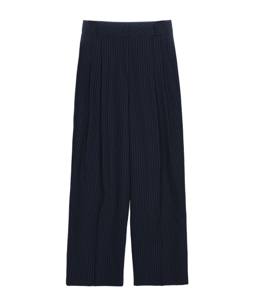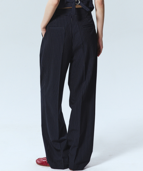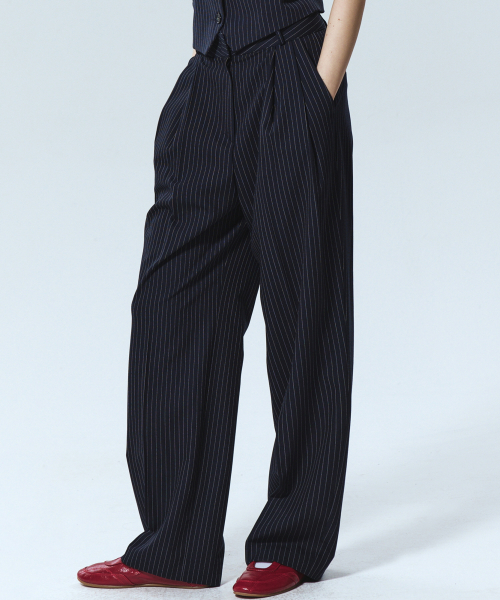 TAILORED STRIPE PINTUCK SLACKS_NAVY
