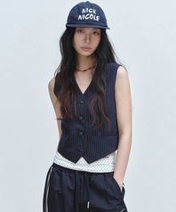 TAILORED STRIPE SINGLE VEST_ NAVY