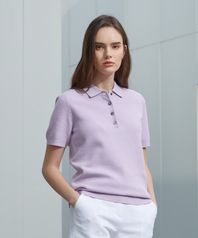 린넨 블렌디드 반팔 카라니트_라벤더