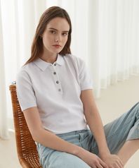 린넨 블렌디드 반팔 카라니트_화이트
