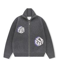 Y.E.S Dice Full Zip-up Knit Cardigan Charcoal