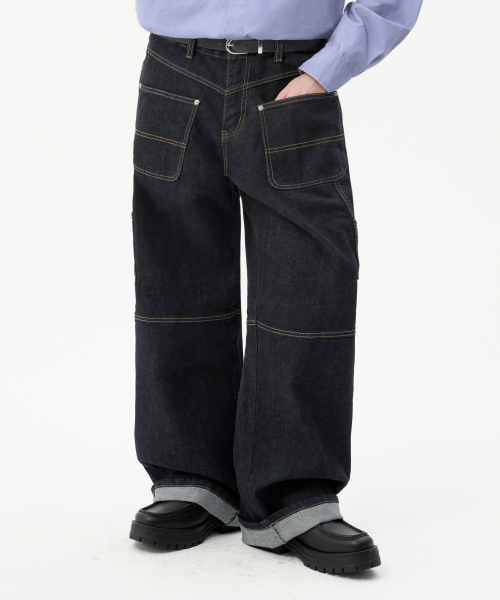 파번 7505 카펜터 와이드핏 다크인디고 데님팬츠