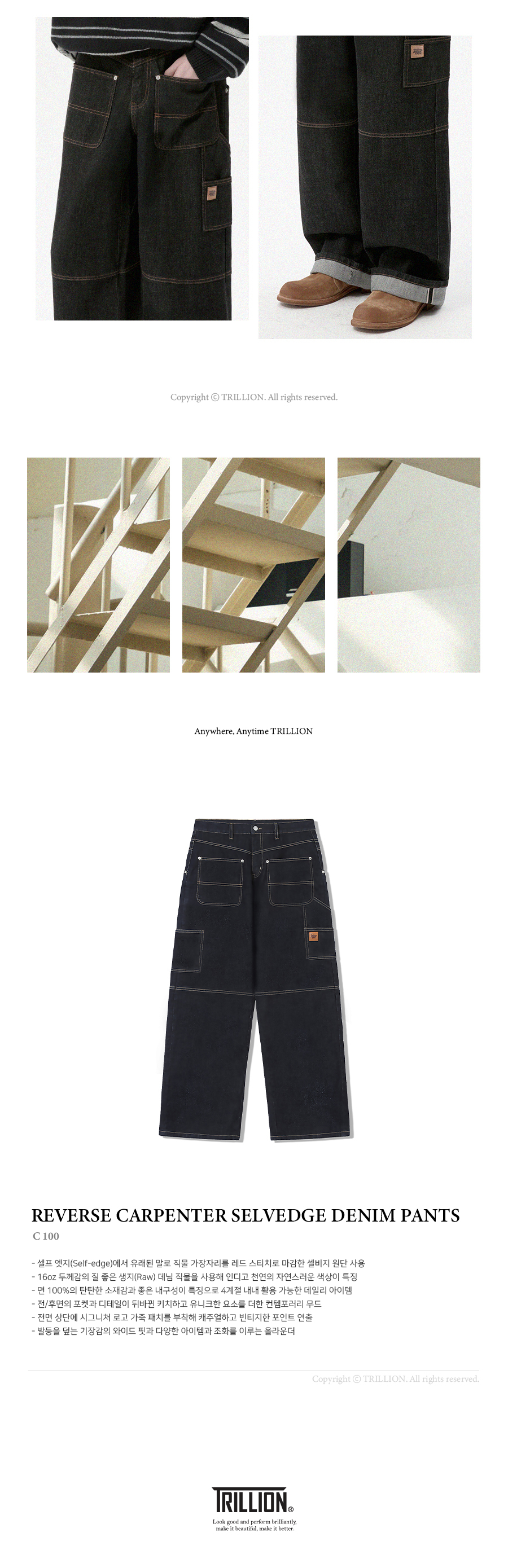 트릴리온(TRILLION)은 클래식, 빈티지, 아웃도어, 어반 등의 스타일을 베이스로 트릴리온만의 컨템포러리 감성을 더해 높은 퀄리티의 제품을 합리적인 가격에 제시합니다. 단 하나의 제품에도 만족감을 느낄 수 있는 가치를 추구합니다.