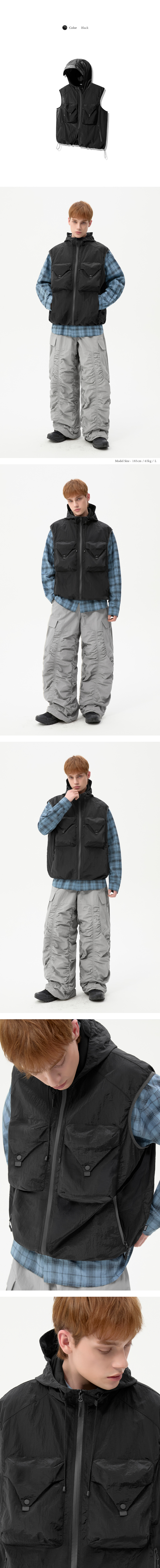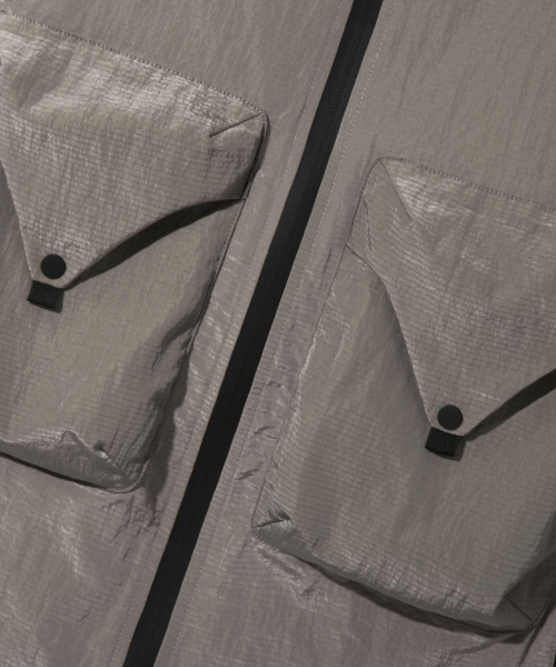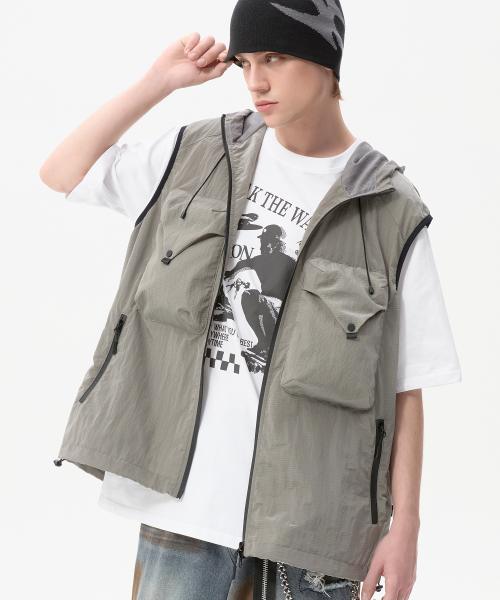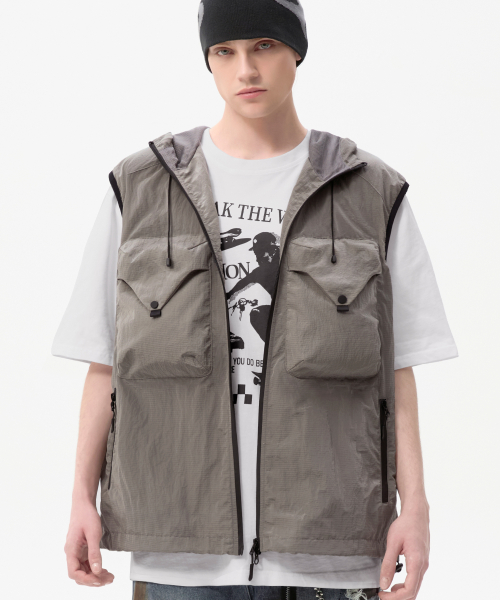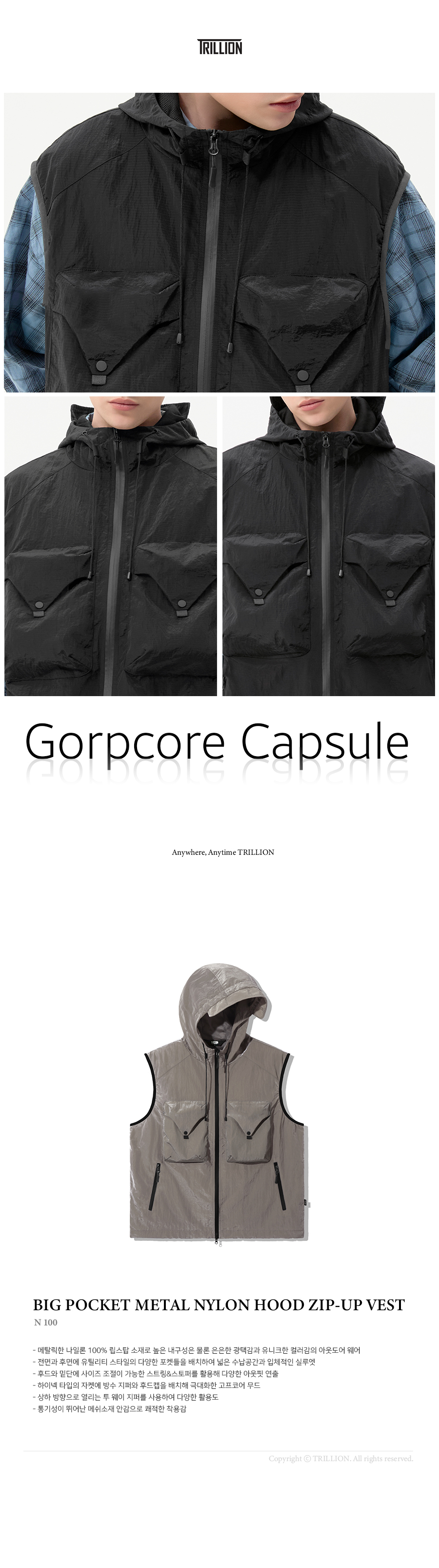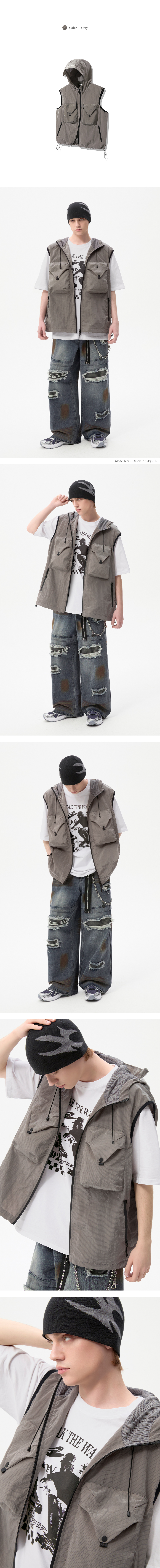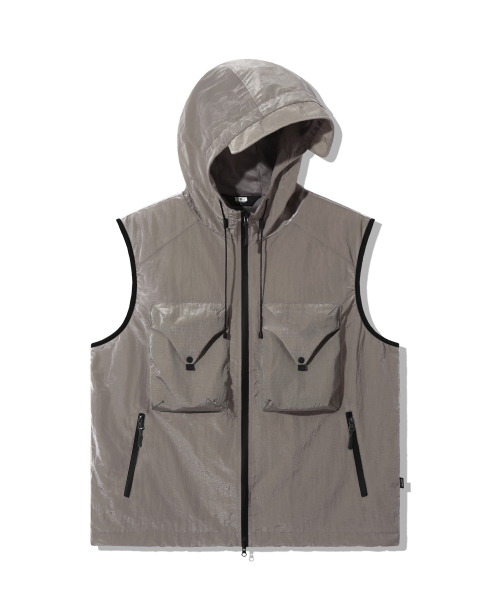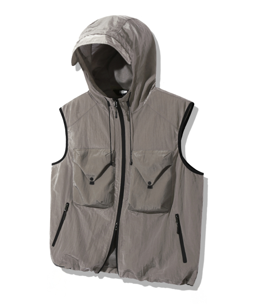 빅 포켓 메탈 나일론 후드 집업 베스트 [그레이]