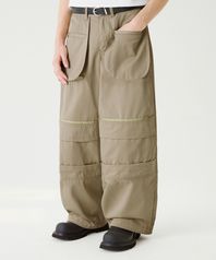 라운드 포켓 니 딥 턱 벌룬핏 코튼 팬츠 [베이지]