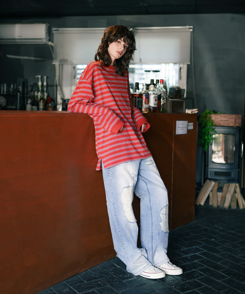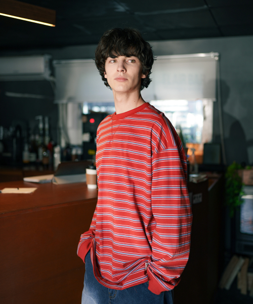 로이 스트라이프 긴팔티셔츠 레드오렌지 NSLT9192