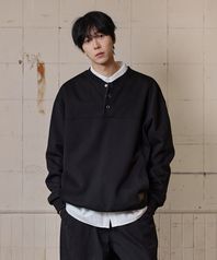 헨리넥 버튼 포켓 맨투맨 블랙