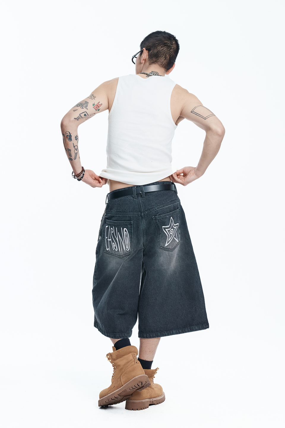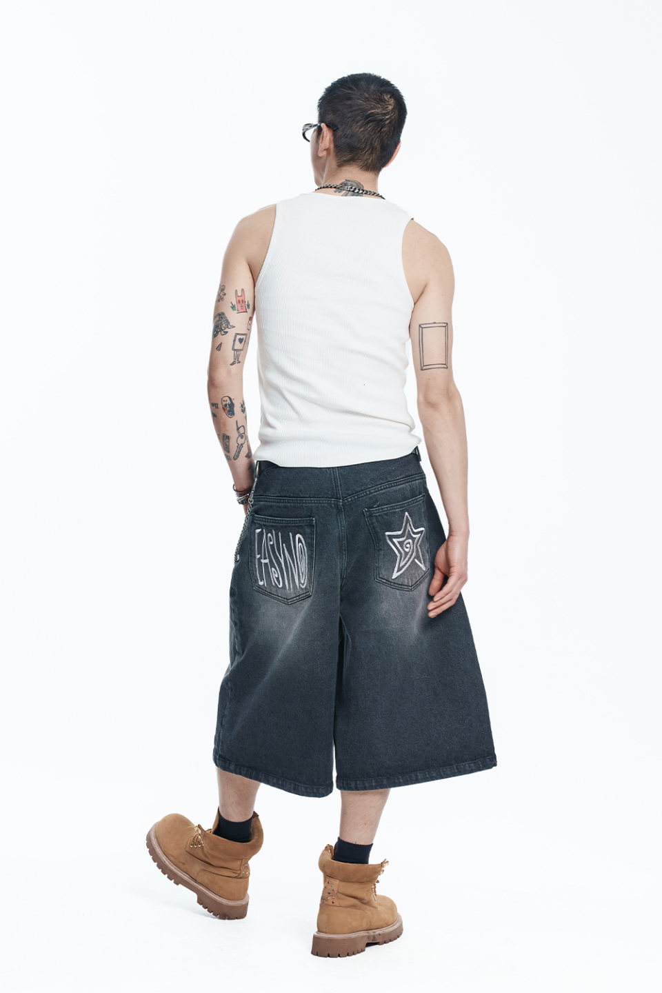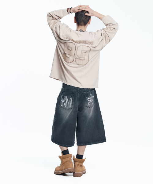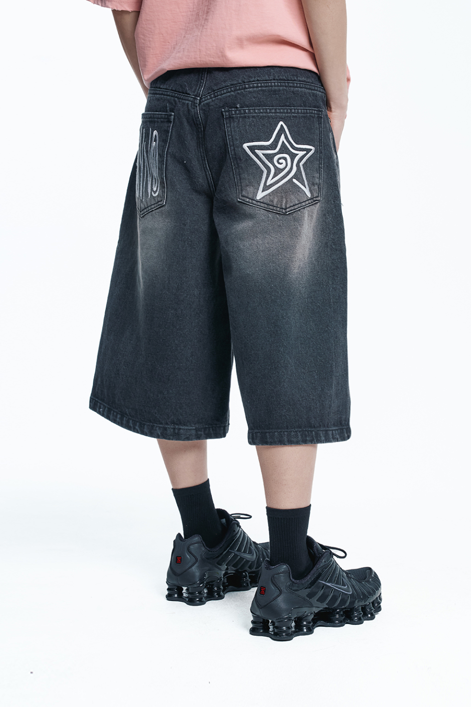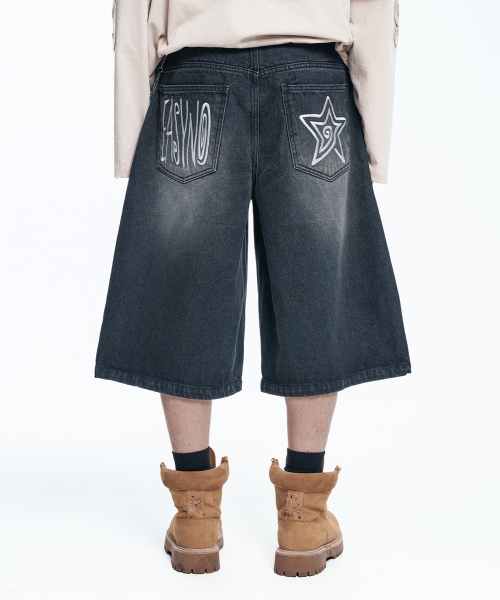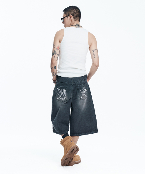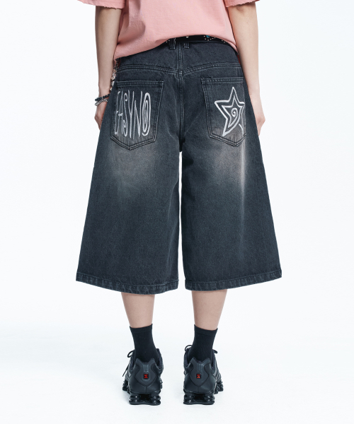 스타 8부 데님 버뮤다팬츠 - 블랙
