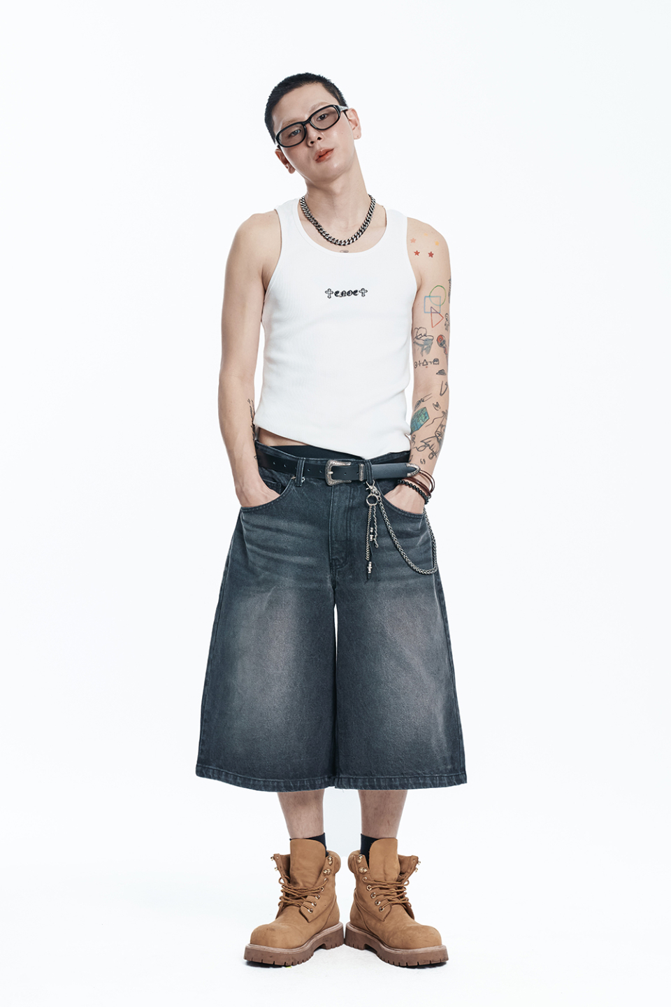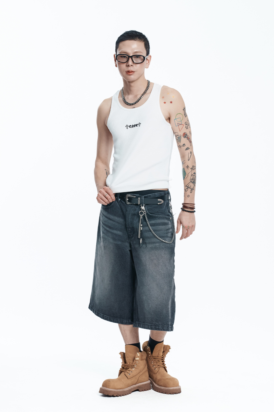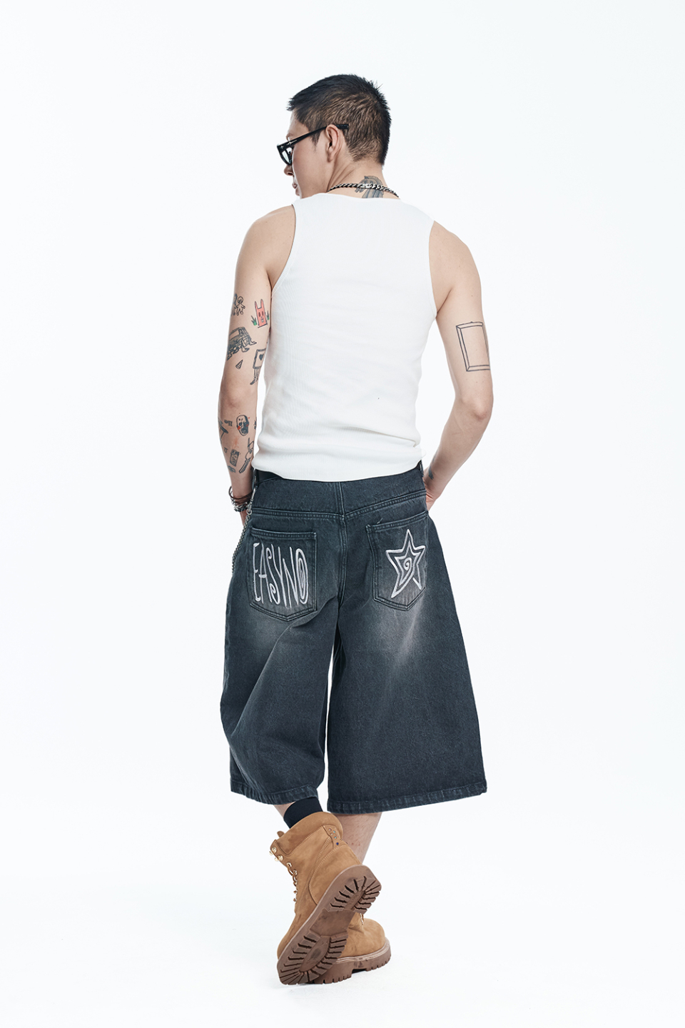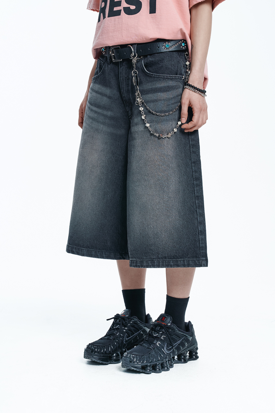 스타 8부 데님 버뮤다팬츠 - 블랙