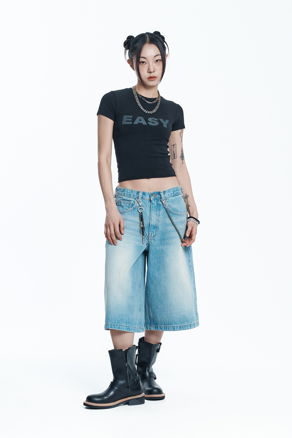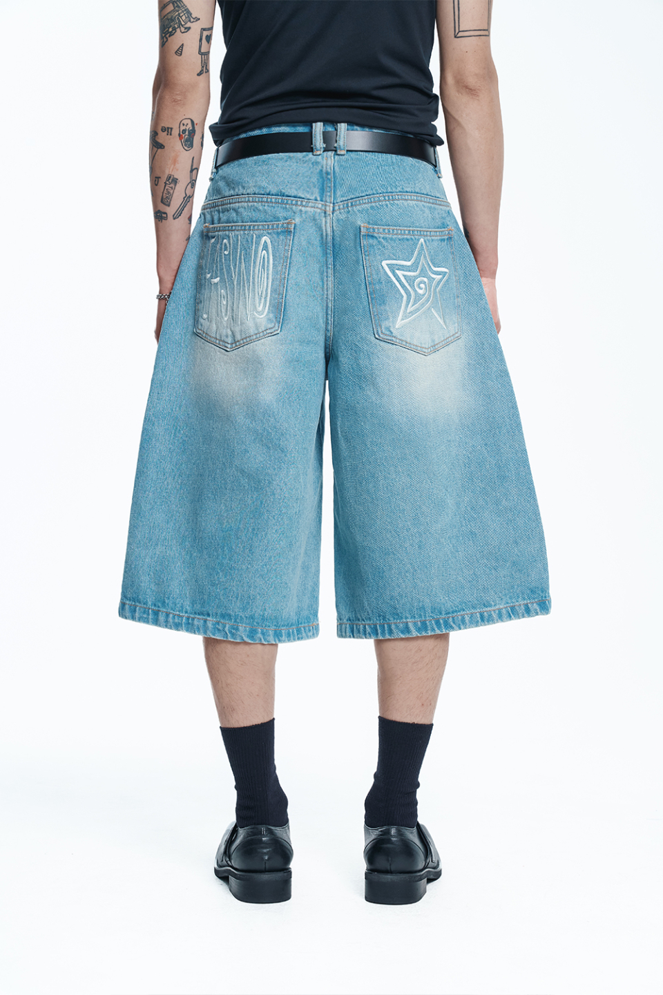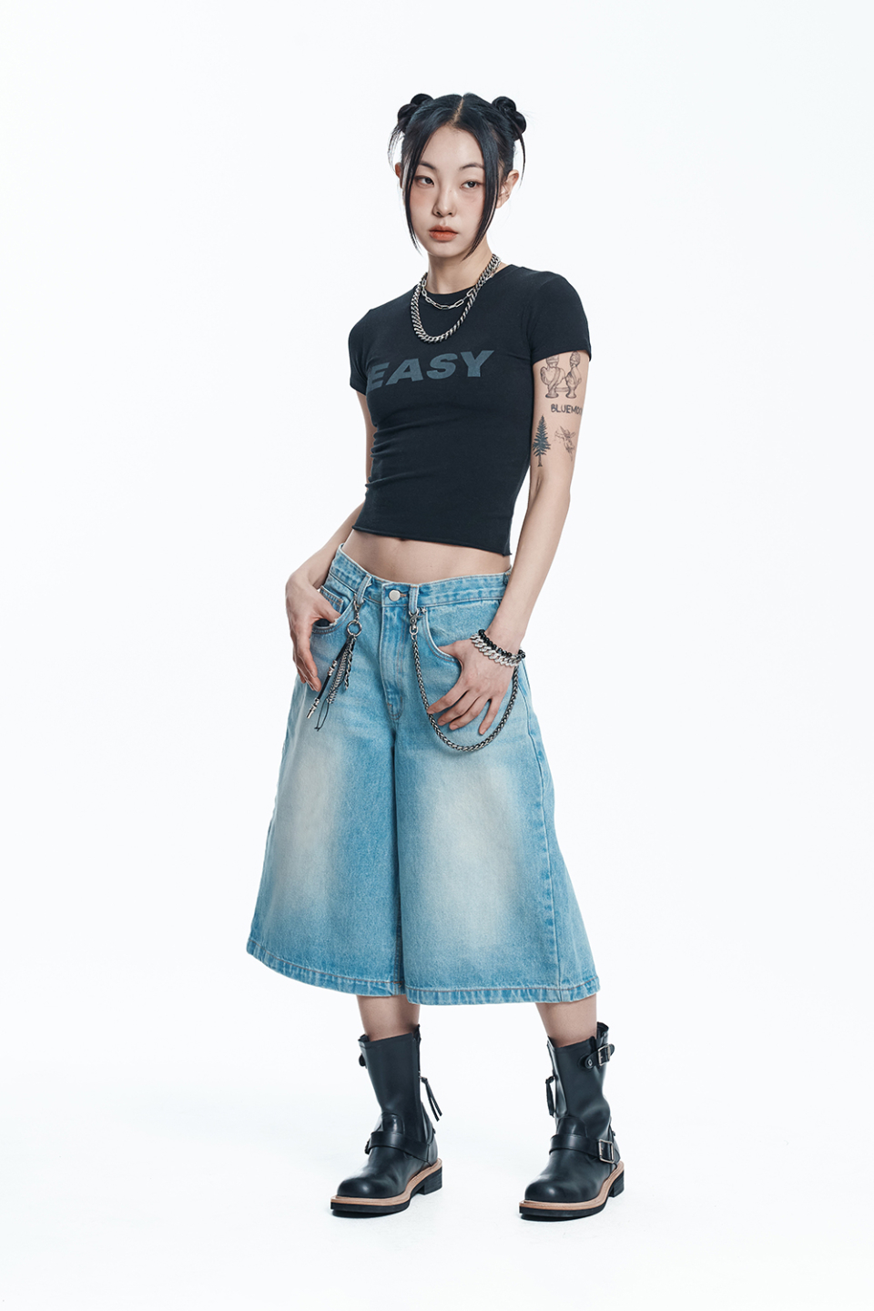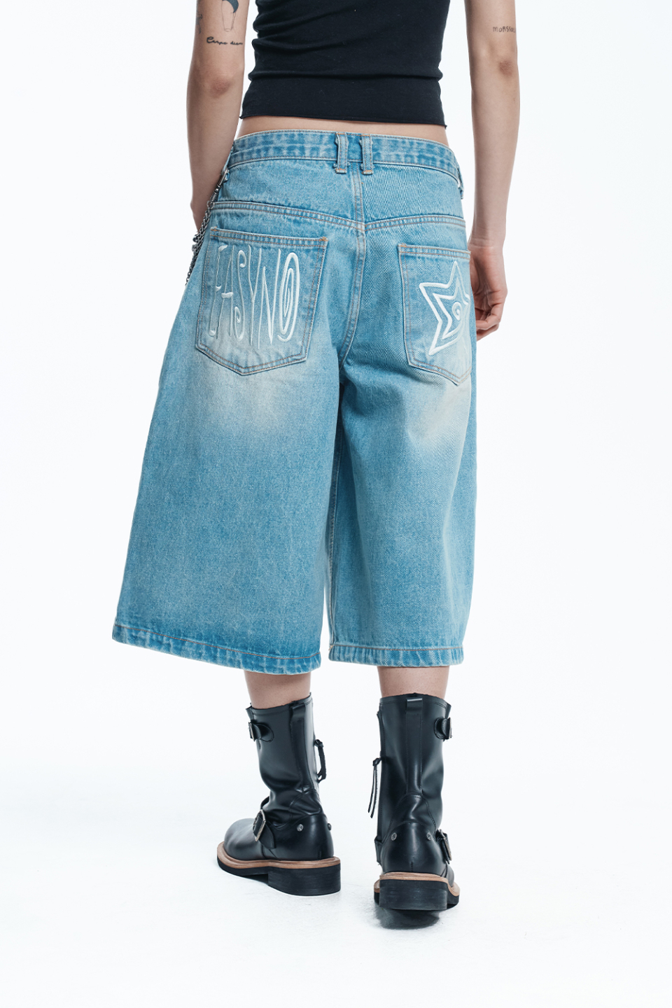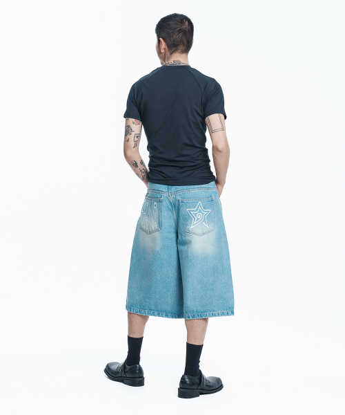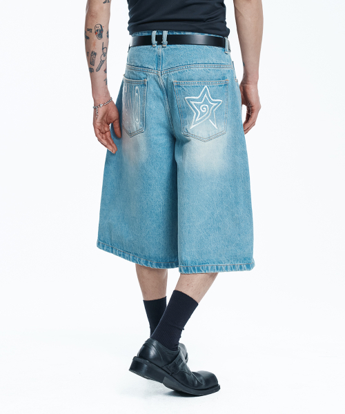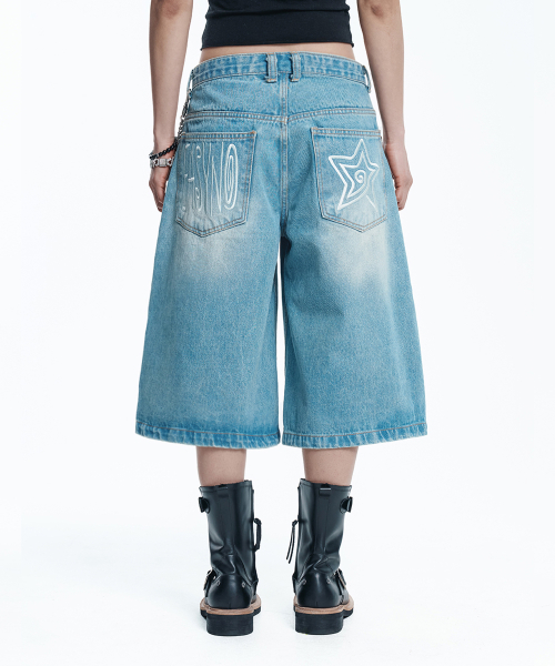 스타 8부 데님 버뮤다팬츠 - 라이트블루