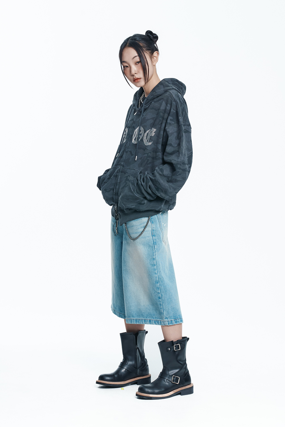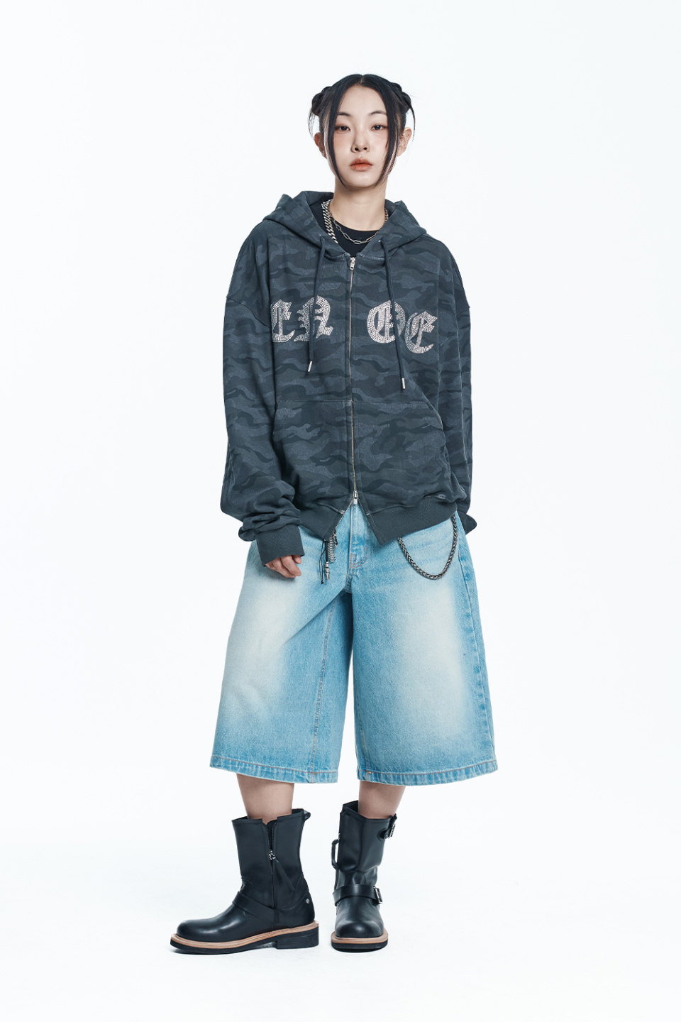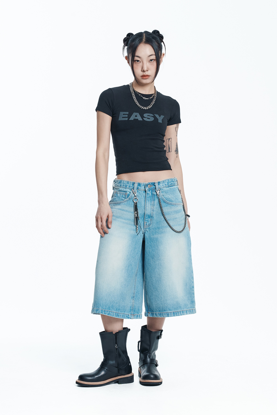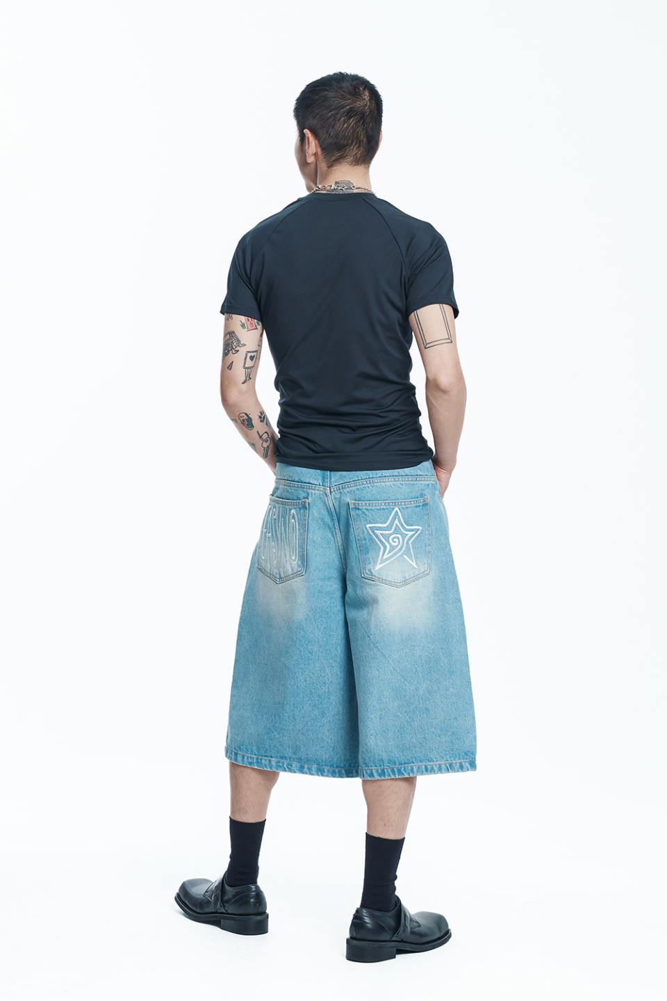 스타 8부 데님 버뮤다팬츠 - 라이트블루