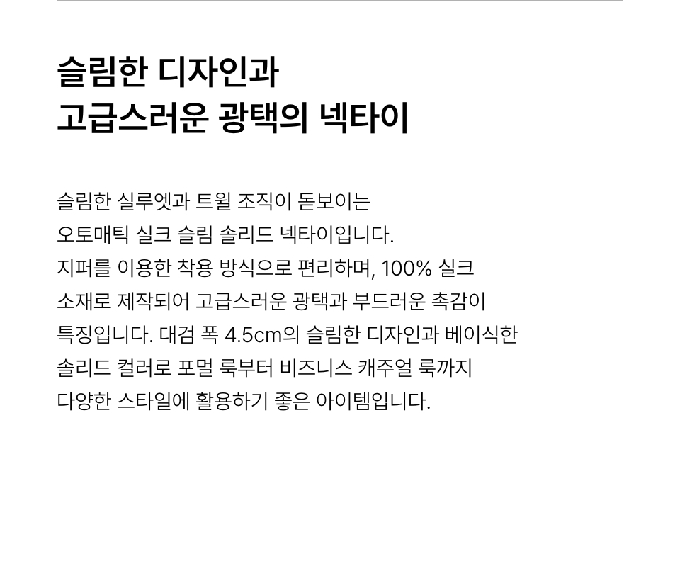 오토매틱 실크 슬림 솔리드 넥타이 [블랙]