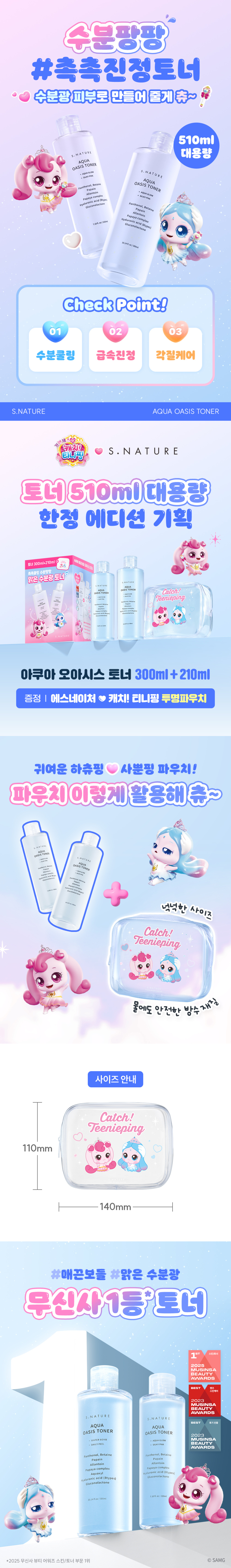 아쿠아 오아시스 토너 300ml+210ml 캐치티니핑 에디션 기획세트(+투명 파우치 증정)