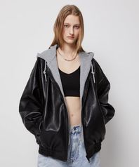 [후드 탈부착]9008 비건레더오버핏후드점퍼_블랙