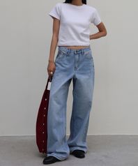 우먼즈 라이트웨이트 루즈 스트레이트 데님 팬츠 [라이트 인디고]
