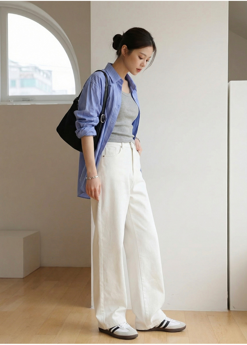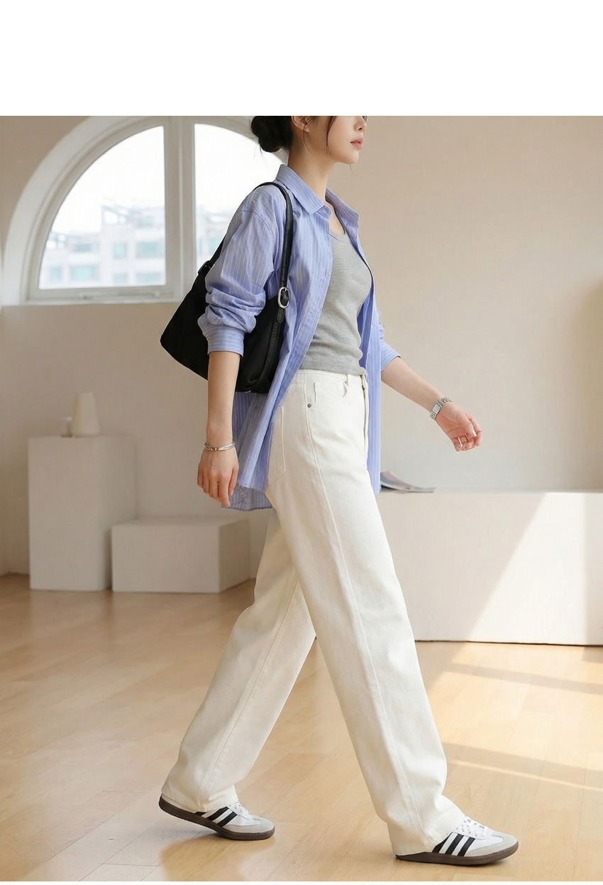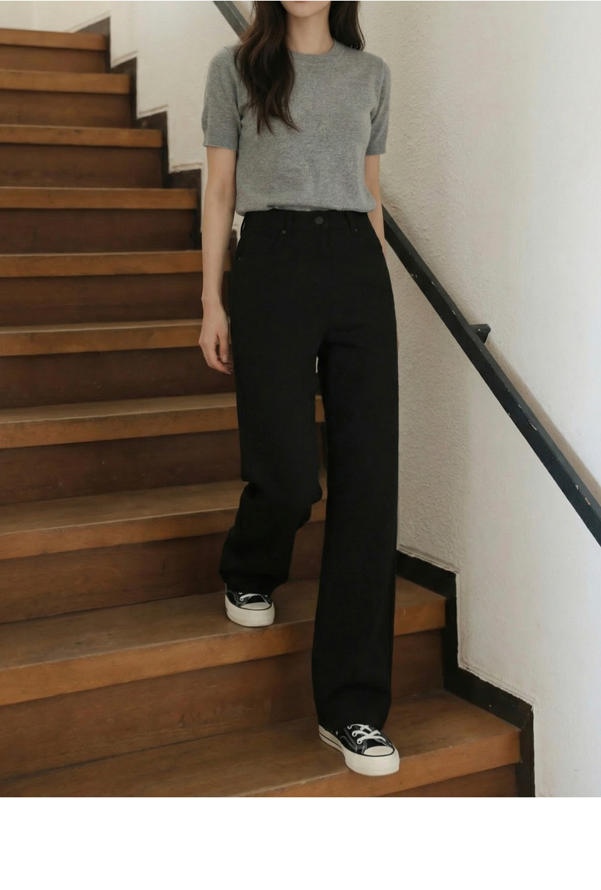 - 스트레이트 와이드 핏으로 레그 라인을 곧고 예뻐 보이게 하는 완벽한 핏