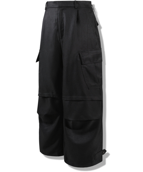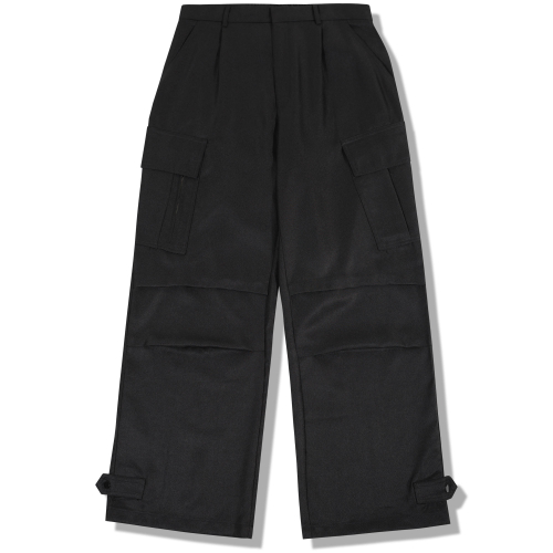 원턱 와이드 트윌 코튼 밴딩 팬츠 [블랙]